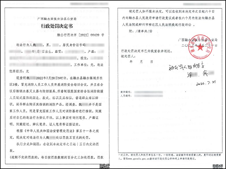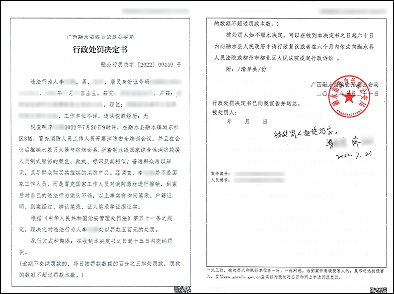 融水苗族自治县公安局依据《中华人民共和国治安管理处罚法》第五十一条之规定,予以处罚。