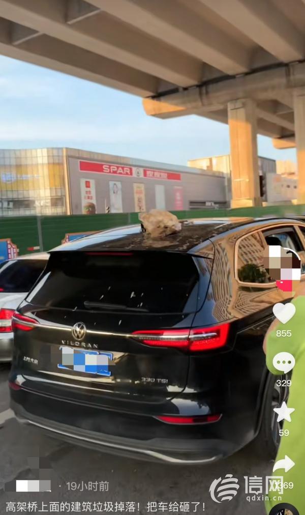 信网8月11日讯(记者 顾青青)“高架桥上面的建筑垃圾掉落!把车给砸了!”8月5日,市民朱先生驾车通过青岛辽阳西路正在施工的高架桥下时,被掉落的异物砸了车。虽然人没事,但让他属实吓了一跳。信网了解到,此次异物掉落共砸伤了两辆车,万幸没有人员受伤。据悉,辽阳西路高架桥由青岛市政空间开发集团下属的青岛城建集团有限公司负责施工建设,信网探访现场看到,事发路段异物疑似从两段在建桥体连接处缝隙掉落,掉落的异物是什么?为何会掉落?截至发稿,青岛市政空间开发集团并未回应。