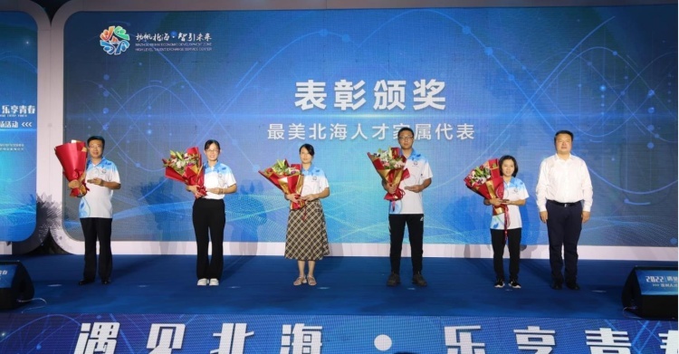 下午,“与北海一起向未来”北海经济开发区青年人才大会在北海大饭店举行,出席会议领导、高层人才代表、嘉宾、青年人才、新闻媒体及其他与会人员现场观看《遇见北海 遇见更美好的未来-人才招引宣传片》,聘请区内人才工作重点企业负责人、高层次人才、青年人才代表担任“人才推荐官”。会议现场,为全区人才工作重点企业优秀代表颁发奖牌,为“优秀青年人才”代表颁发证书,为“最美人才家属”代表颁发奖杯。同时,邀请高层次人才代表、人才家属代表讲述在北海创业就业的故事,分享感动过往,展望美好未来。