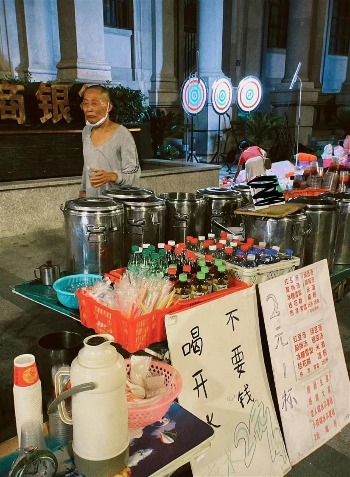 老人摆摊卖了十多年的糖水,不仅可以免费续杯,而且都是一两元的低价,不涨价。