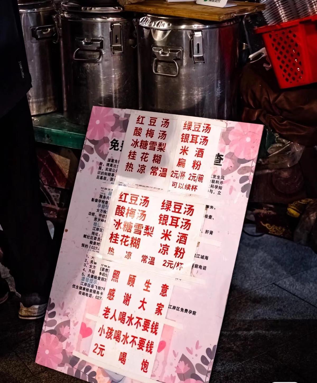 在8月之前,连续十多年,每天晚上,他会到武汉科技馆附近摆摊卖糖水,多年来坚持只卖2元一杯,且可无限续杯,老人和小孩喝糖水直接免费。
