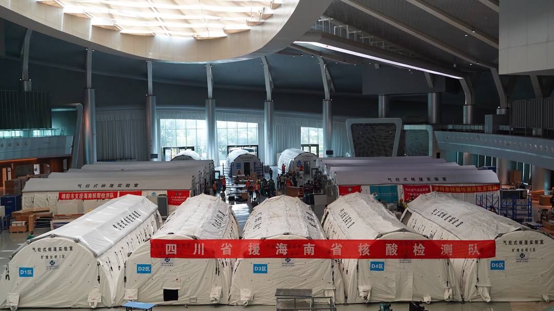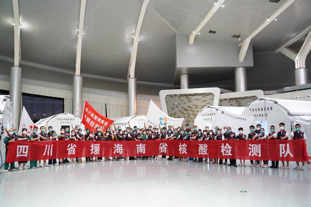 自8月1日海南省三亚市出现疫情并扩散至海南省内的13个市县后,四川省于8月6日派出798人组成四川援海南核酸检测支援队,携带日检测能力达5万管的省级气膜舱以及相应试剂耗材和防护物资等前往海南儋州支援,每日可检测核酸15-20万管。