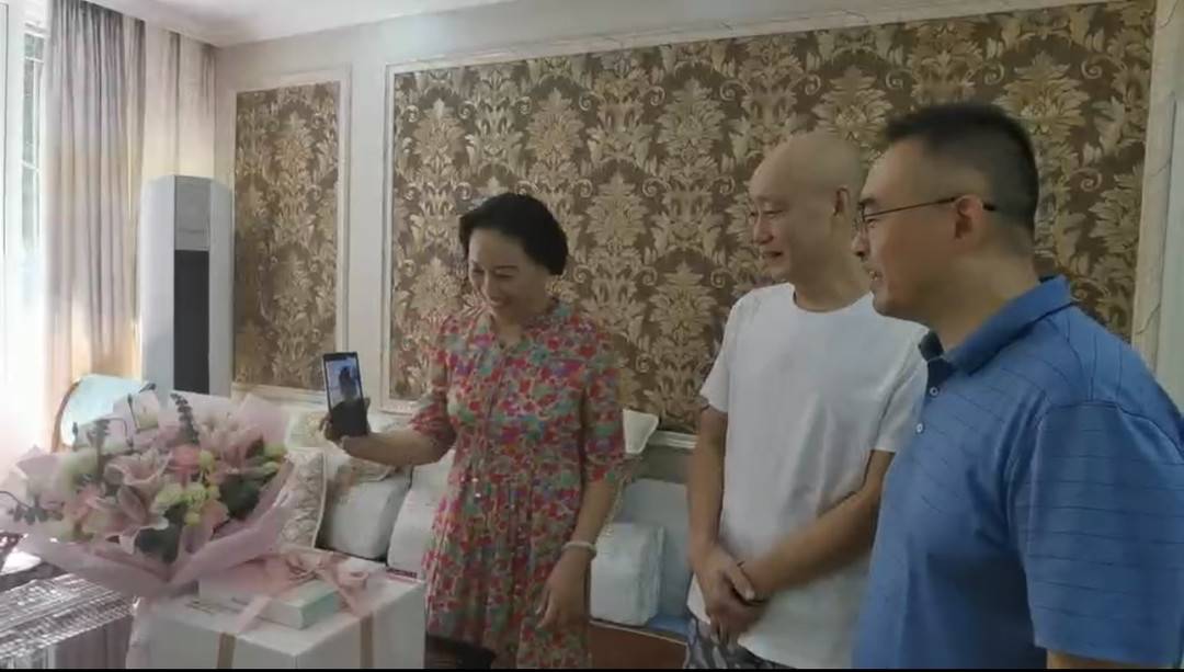 当天上午,西南医科大学附属医院工会常务副主席郝杰出带着一束鲜花和一个蛋糕,到家里看望了施逸的父母,并和她拨通视频,送上了医院对她的祝福。视频里,母亲拿着手机将生日礼物拍给施逸看,父亲则叮嘱女儿:“一定要保护好自己,才能消灭病毒,完成任务”。