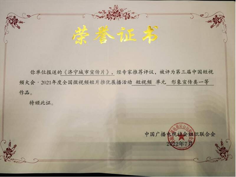 据悉,本届短视频大会自启动以来,通过优秀短视频及中短片推选活动,共征集一千余件作品,总计入围389个,济宁30秒宣传片经层层选拔,在众多优秀作品中脱颖而出,再次得到社会各界的认可。