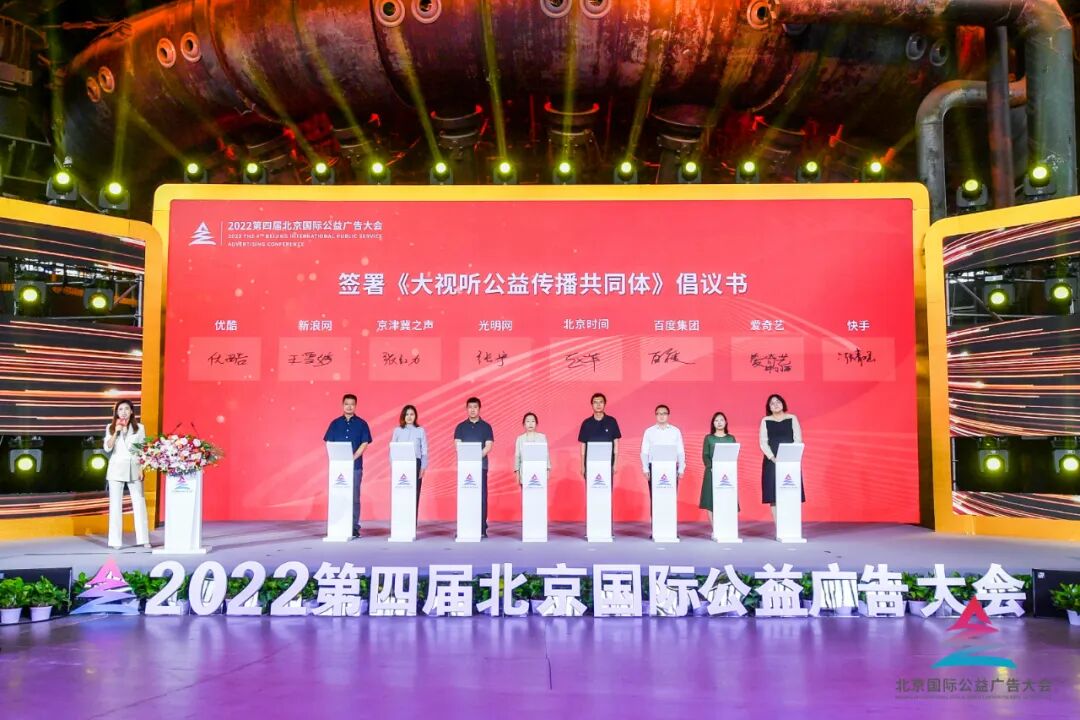 为弘扬公益精神,推进公益事业,展现中国精神,传递中国力量,本届大会首次面向新闻媒体、互联网平台,发出共建“大视听公益传播共同体”倡议,在公益与光影的交织下,同频共振,奋力开创大视听公益广告新局面。光明网、北京时间、京津冀之声、百度集团、新浪网、爱奇艺、优酷、快手等新闻媒体和互联网平台代表签署了倡议书,并承诺履行好公益传播的社会责任。