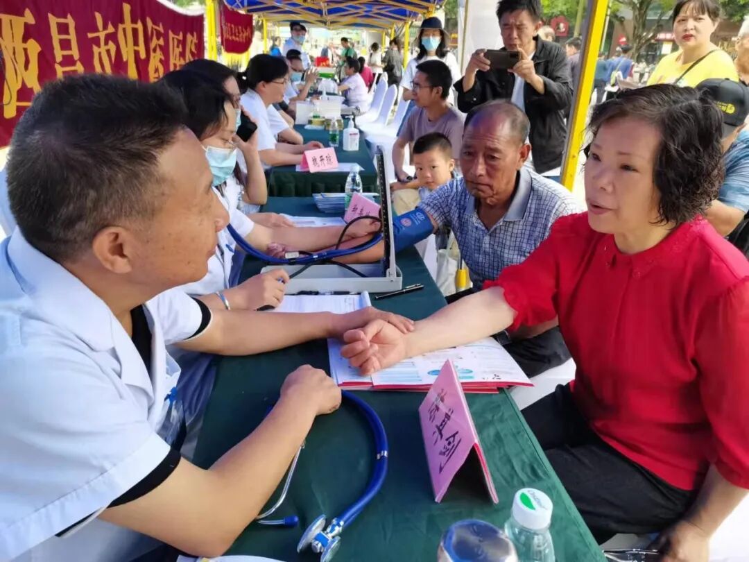 (义诊现场患者络绎不绝)