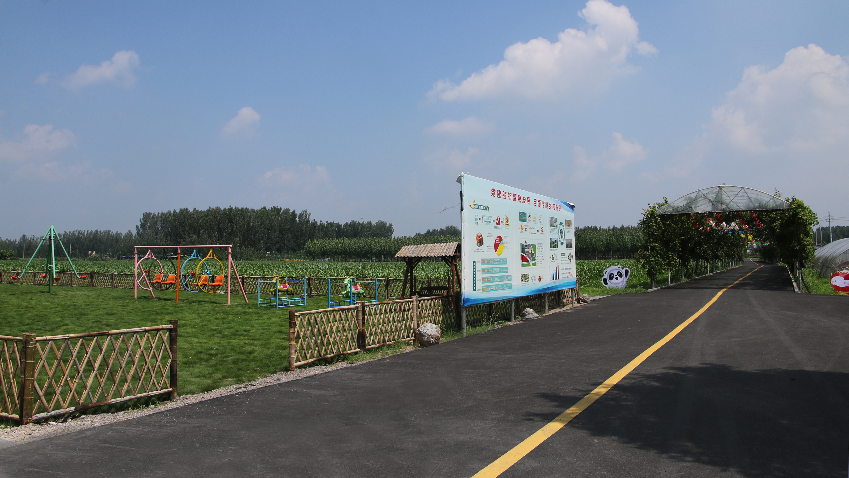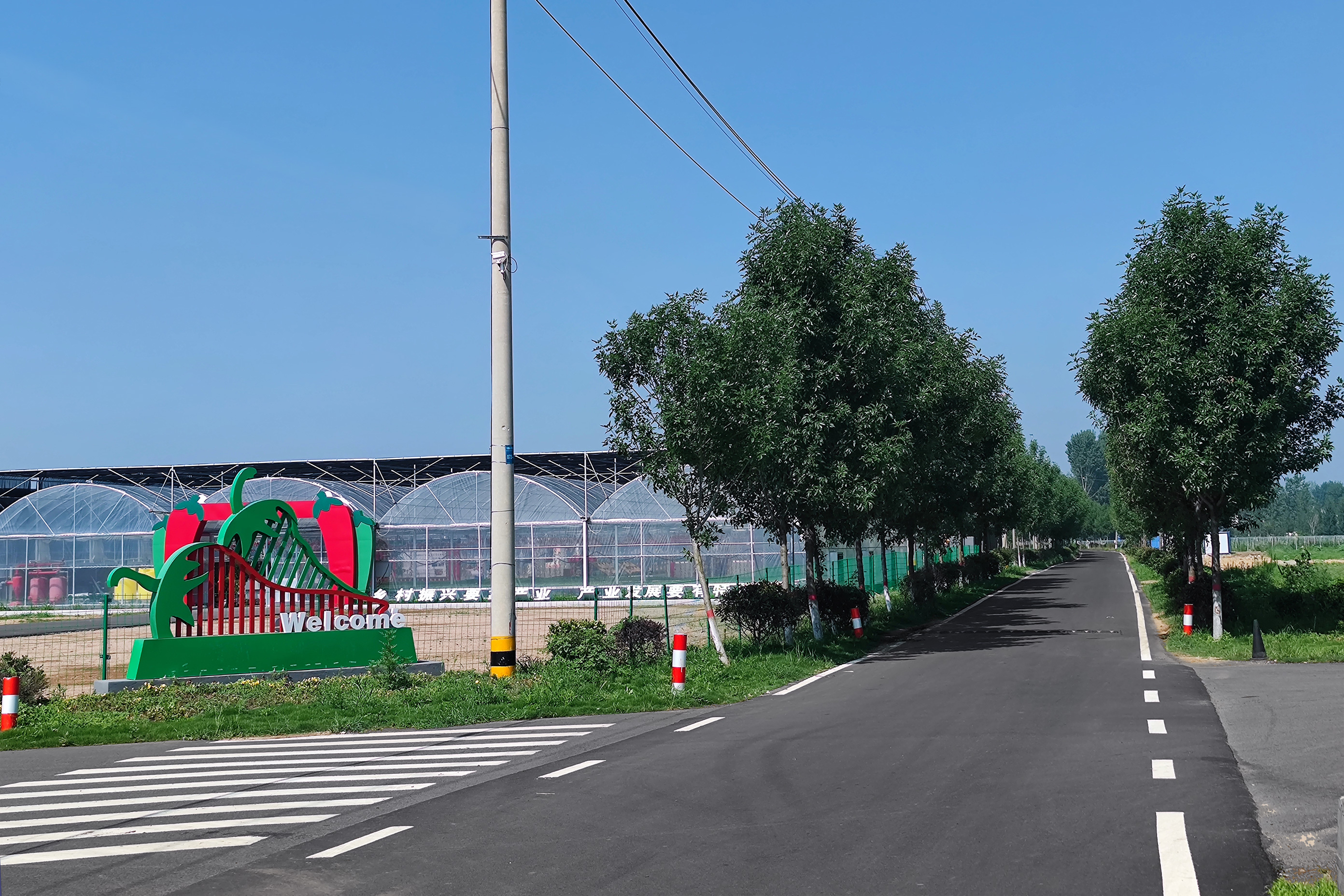 村子里绿树成荫,温室大棚也体现了村民的勤劳和智慧。王艺璇/摄
