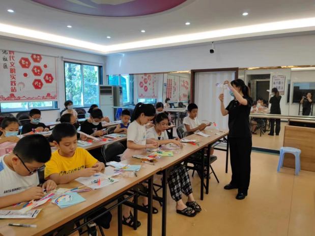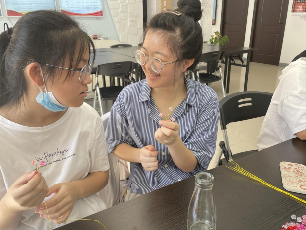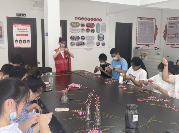 与此同时,在滨江街道杨府山社区,这里的青少年学生们通过利用废旧铁丝做“花”,发挥各自的巧手在让铁丝在手中飞舞,打造出一支支美丽的“仿真”花朵,并将“花朵”插入废旧塑料瓶或玻璃瓶中,最后形成了一个个精美的“满天星水晶花”。水晶花的制作看似简单,却需要极大的耐心,因此在制作的过程中每一位小朋友都很谨慎,小心翼翼地、细心地制作,最终塑造出自己心中最美的“花朵”。