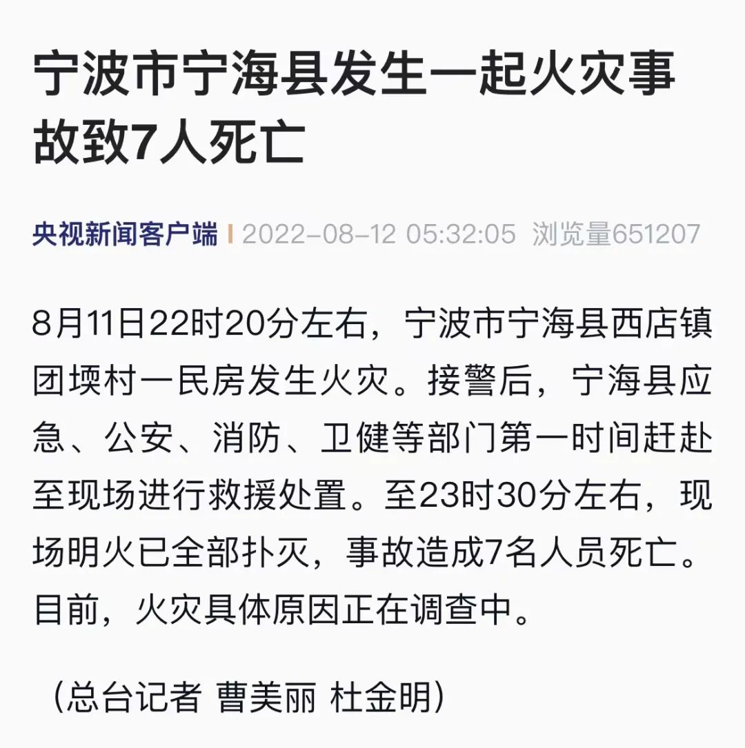 8月11日22时20分左右,宁波市宁海县西店镇团堧村一民房发生火灾。接警后,宁海县应急、公安、消防、卫健等部门第一时间赶赴至现场进行救援处置。