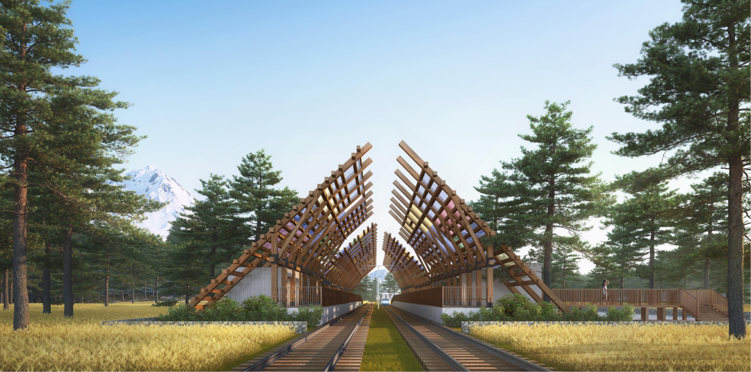 玉龙雪山站—玉龙群峰,山在纳西语里玉龙雪山叫做“欧鲁”,有着银色的山岩的意思,造型构思采用了山峰的形状,进行一定程度的组合变形从而形成方案思路。此外,还有东巴谷站—图腾石柱等设计闪耀其中。