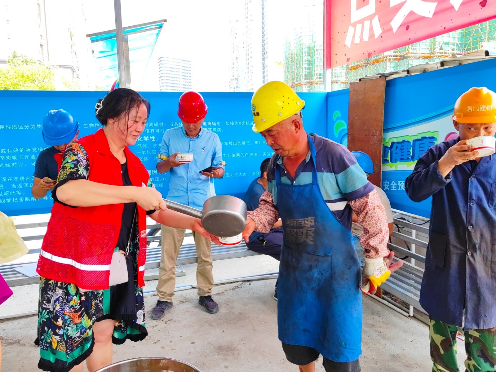 志愿者为一线工人送清凉(陈冬冬 供图)