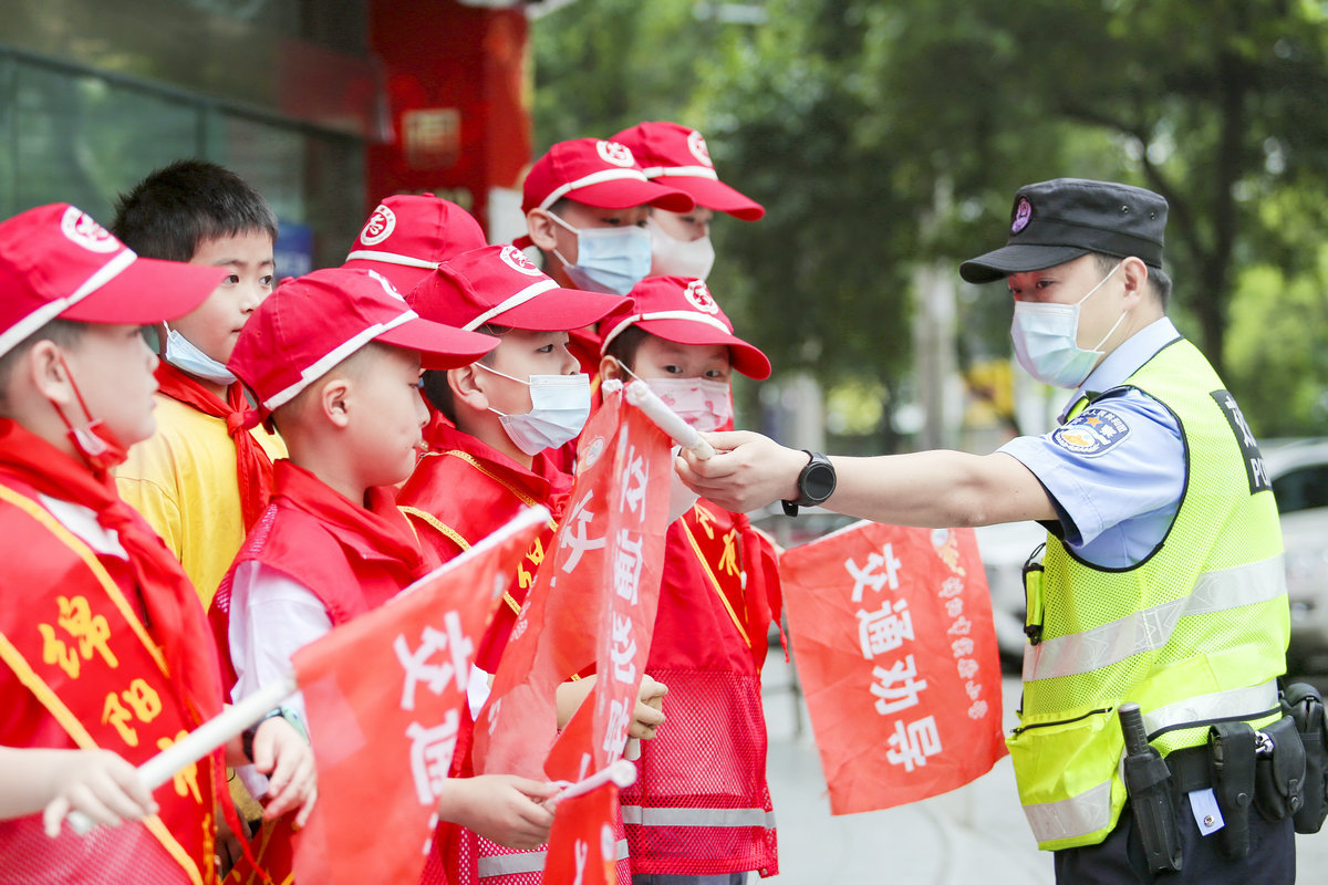 小志愿者走上街头倡导文明出行(陈冬冬 供图)