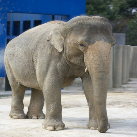 亚洲象是亚洲现存最大和最具代表性的陆生脊椎动物,全身深灰色或棕色,体表散生有毛发。成年雄性亚洲象,身长为5~7米,肩高约⒉4~⒊1米,尾长为⒈2~⒈5米,重约⒉7~5吨,雌象体形稍小。象的耳朵很大,有丰富的血管以便散热,顶端有毛刷。同非洲象相比,亚洲象体形较小,耳朵较小,前额较平。通体为灰棕色,前额左右有两大块隆起,称为“智慧瘤”,其最高点位于头顶,但它的脑却很小。头盖骨很厚,虽然骨骼内充满了气孔,可以减轻重量,但颈部的负担仍然很重。背部向上弓起。四肢粗壮,几乎垂直于地面,像四根柱子,前肢5指,后肢4趾。