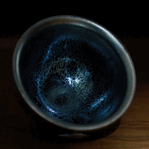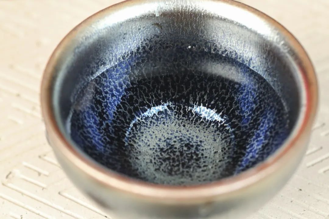 它突破了曜变工艺的传统,将蓝色的清幽与银色的冰魄留在了盏中。