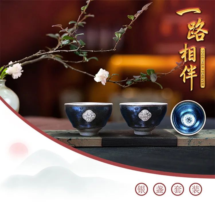今天,就为大家带来这十分难烧制的一套蓝麒麟建盏对杯——《一路相伴》足银对盏。