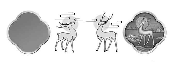 盏面镶嵌有足银的瑶光鹿银章,四叶草造型,2g左右的999足银材质。