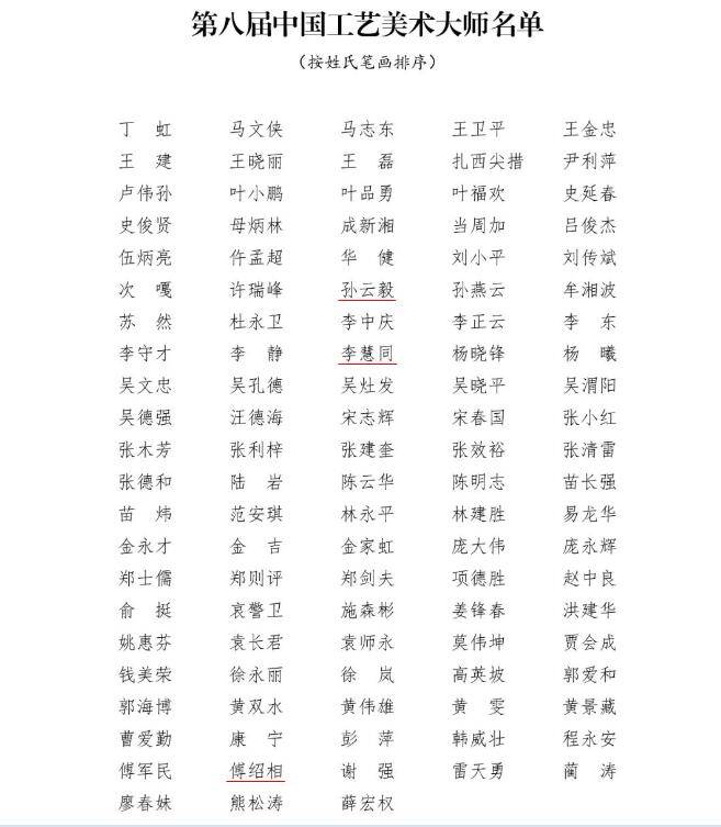 齐鲁网·闪电新闻8月12日讯 8月5日,第八届中国工艺美术大师评选结果公布,全国共有108人入选。作为中国工艺美术领域的最高荣誉,山东推荐的10名候选人中有孙云毅、李慧同、傅绍相3人获此殊荣,实现了多项突破,达到了省轻工联社“保三争五”的目标。