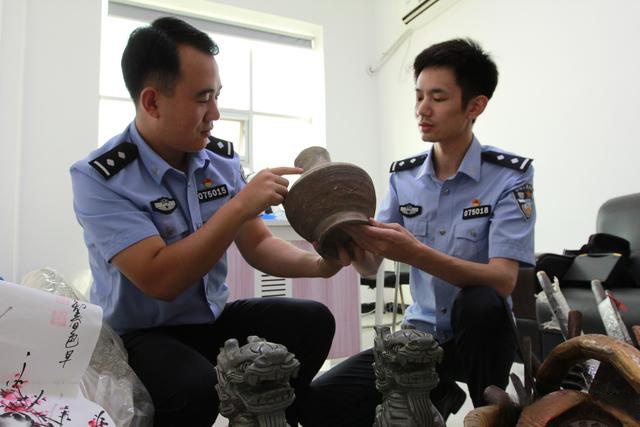 民警仔细清点查缴的古董。