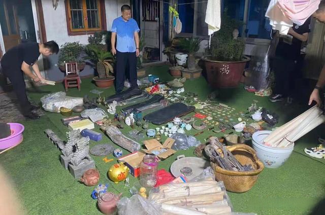 经排查,民警找到嫌疑人葛某的住处,然而嫌疑人早已逃脱,只有其家属在家。民警依法对嫌疑人住处实施搜查,当场清查出大量来历不明的古玩、字画及玉器等,特征符合之前县城一文物市场李先生报警丢失之物。民警决定并案侦查,细致研判嫌疑人葛某可能逃窜的方向,在相关警种的配合下,于8月3日下午获取嫌疑人已窜至郯城县李庄镇躲藏,立即赶到李庄镇将葛某抓获。