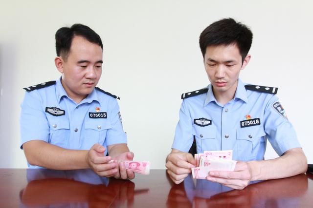 民警将追回的被盗现金返还给受害人。