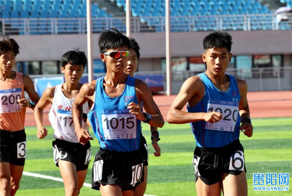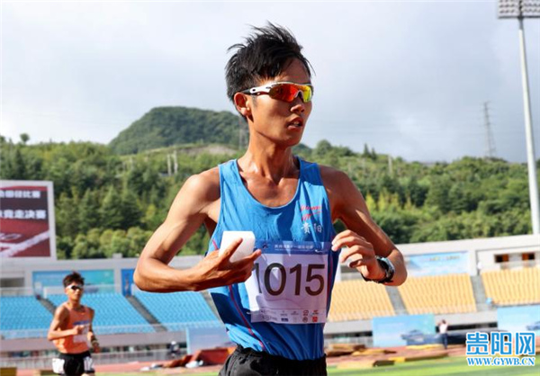 “各就各位!预备!”随着一声发令枪响,上午10点28分,甲组男子10000 米竞走开赛,14名运动员出发。贵阳代表队4名运动员参赛。根据赛规,竞走10000米的个人赛和团队赛同时进行,团队赛取同队前三成绩涂宇、谢光涛、陈韫涵分别同时44分31秒34、47分26秒33、47分48秒74,累计总成绩139分46秒41排名第一。