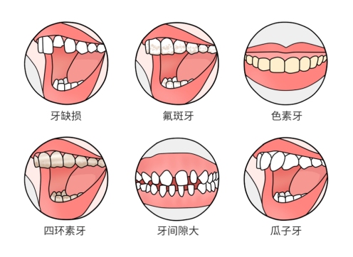 牙齿不齐、牙缝稀疏、前牙拥挤等