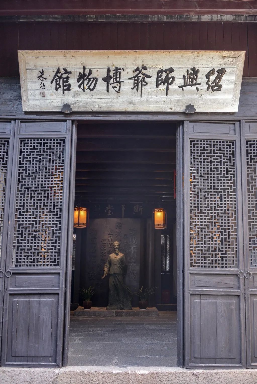 绍兴师爷博物馆设于古镇西市,宅院临河而建,是座典型的绍式黑漆台门。前后分三进,高院墙,缕花窗。门面简朴,庭院幽深,符合师爷隐居幕后,不事张扬的禀性。
