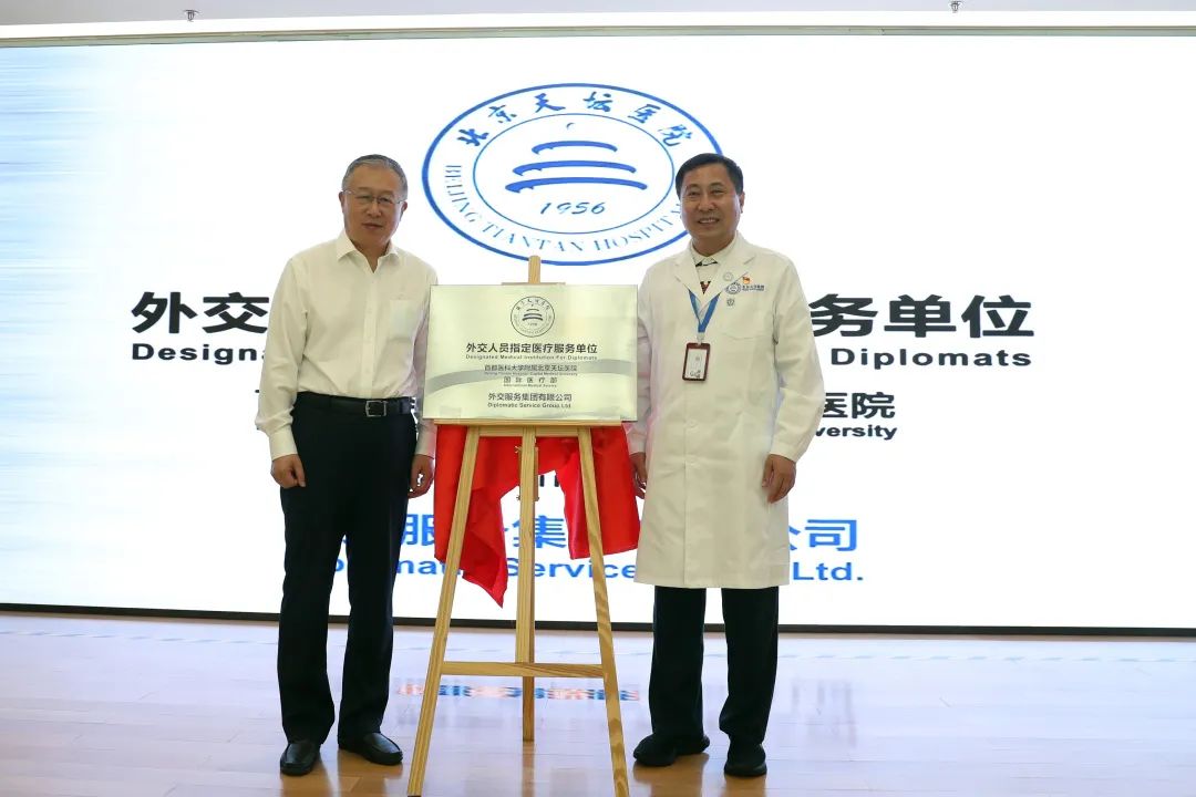 北京外交人员服务局认证北京天坛医院为“外交人员指定医疗服务单位”,并在签约仪式上向北京天坛医院授牌。按照协议,北京外交人员服务局同意并协助北京天坛医院对接驻华外交机构,为北京天坛医院与驻华外交机构的文化交流活动提供便利和支持,推动北京天坛医院积极参与北京外交人员服务局的公共外交活动。北京天坛医院将以国际医疗部为服务主体部门,整合全院医疗资源,建立外事医疗服务联络员机制,为驻华使领馆人员及我国奋斗在外交战线的工作人员提供高质量、国际化的医疗服务。
