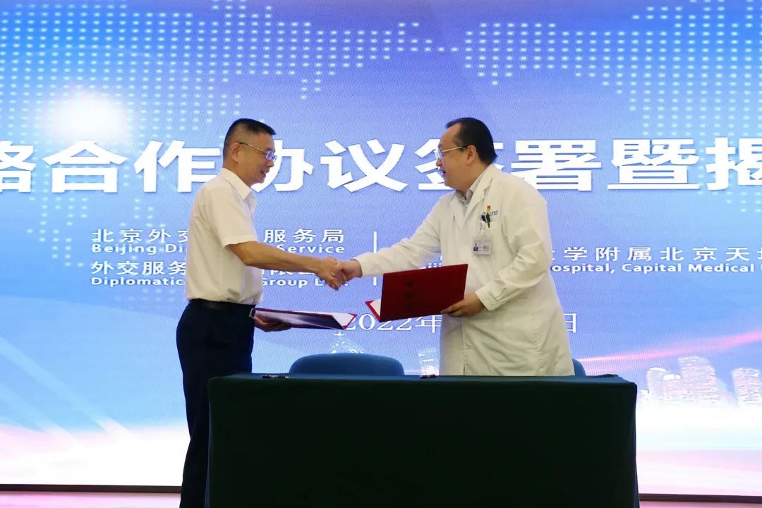 北京外交人员服务局、北京天坛医院相关部门负责人参加签约仪式。