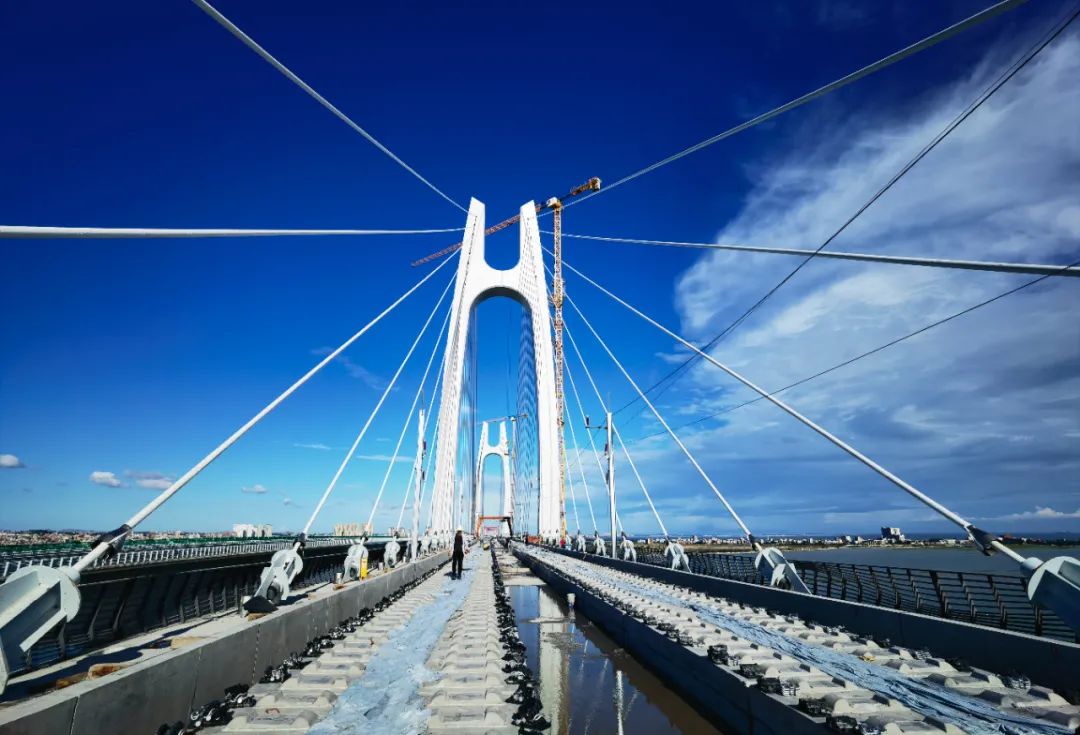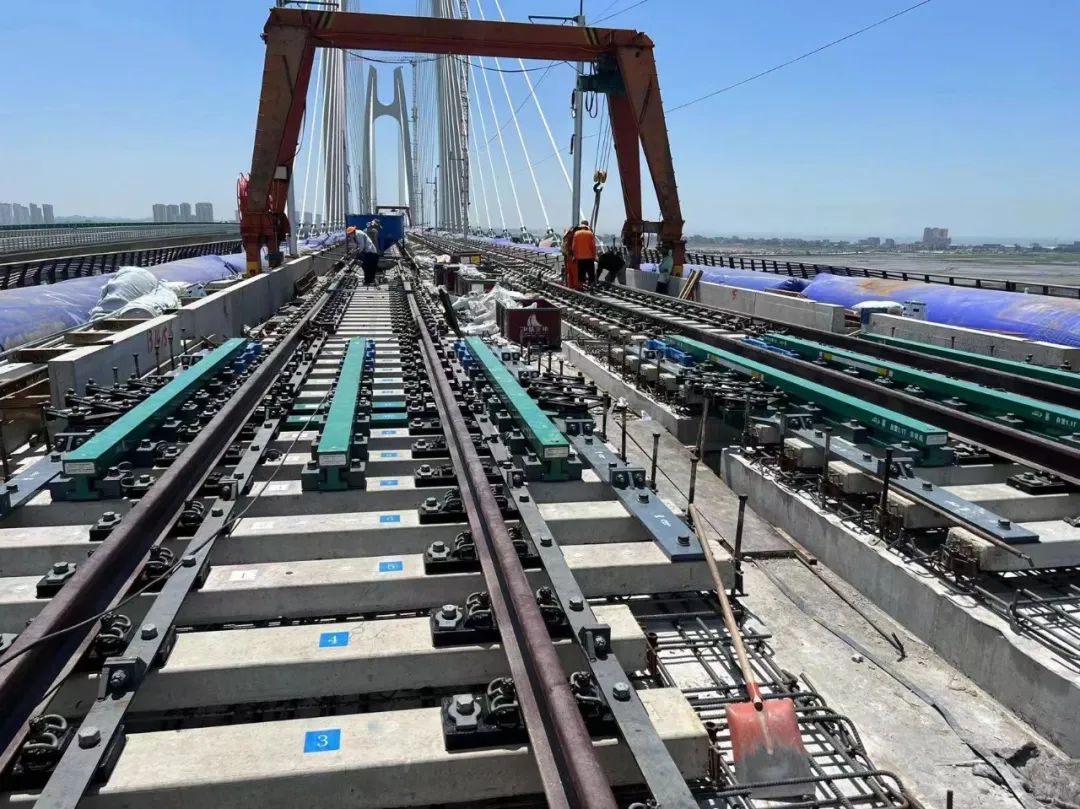 首次在跨海斜拉桥上实现无砟轨道铺设