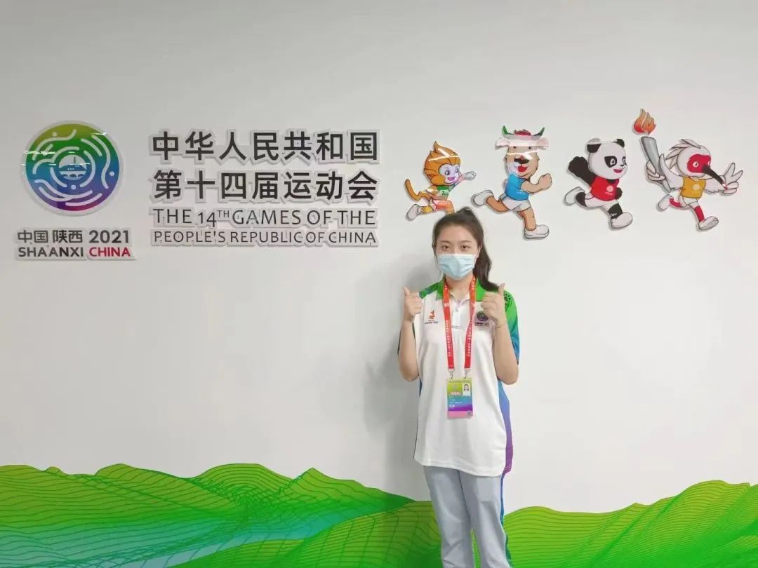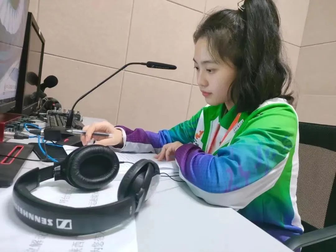 正式成为十四运会的志愿者后,游可欣担任的是IBC解说助理一职,和队友共同负责孙正平老师和蔡猛老师的对接工作。对她来说,这是个全新的领域,她和队友在学习中不断收获、不断成长。时间紧、任务重,但游可欣与同伴排除万难最终完成工作,提升了自身能力的同时获得了老师的认可和赞赏。