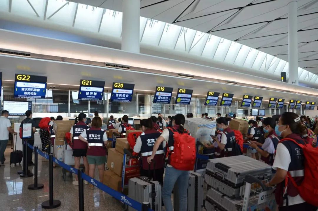 援琼四川医护人员办理乘机手续(王海坤/摄)