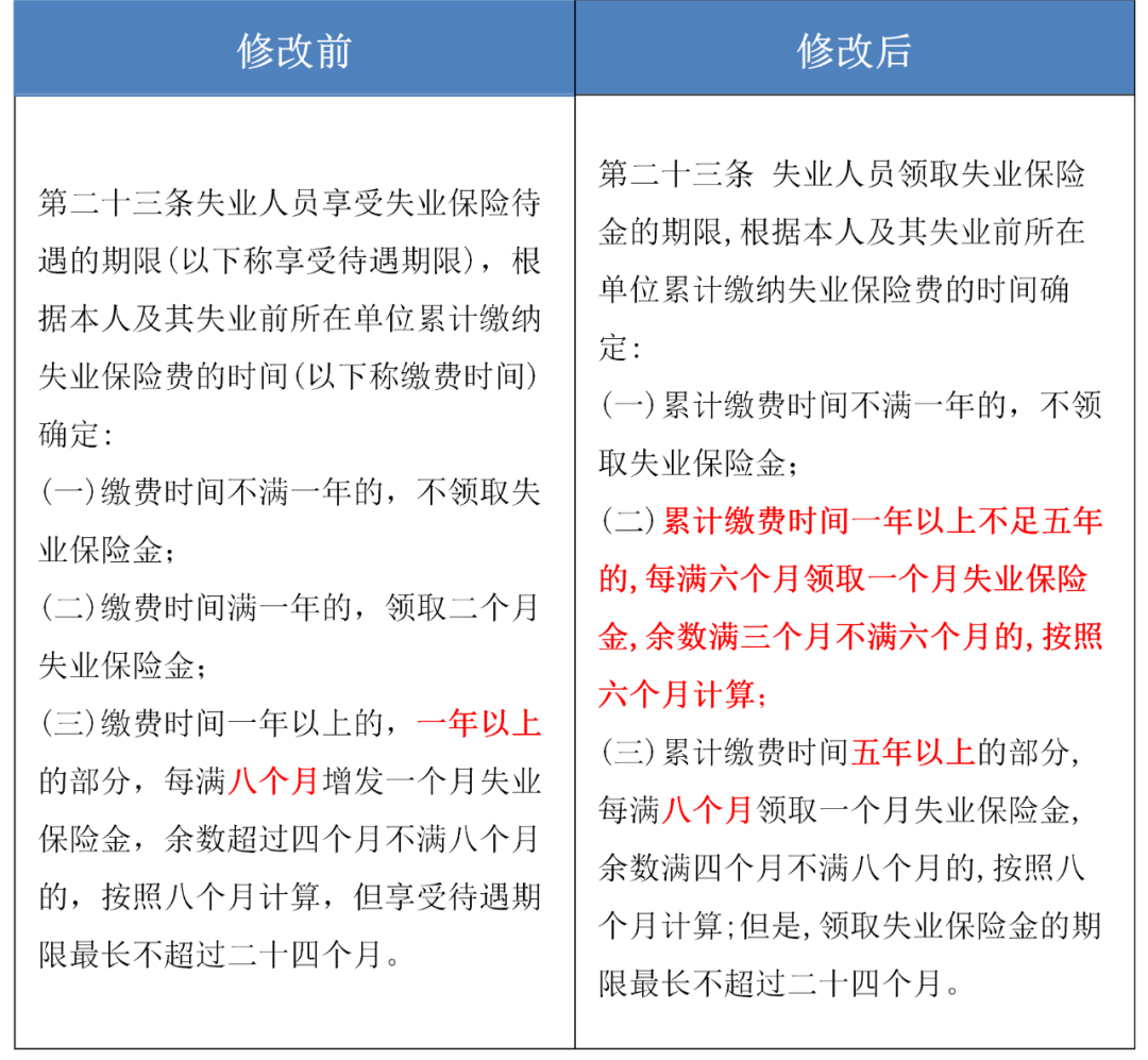 领取失业保险金的期限修改后规定,缴费1年以上不满5年的,每满6个月,即可以领取1个月失业保险金,和修改前相比,缴费1年以下和5年以上部分的计算方式不变,1年以上不满5年这一“中间段”享受期限延长。