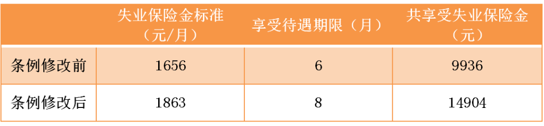 例如,刘女士被单位辞退,8月份开始在网上申请失业保险金,她累计缴纳失业保险45个月(如下表),条例修改后她可以多享受4968元,增幅多达50%,有效保障了她失业期间的基本生活。