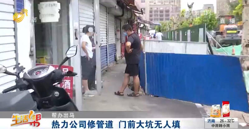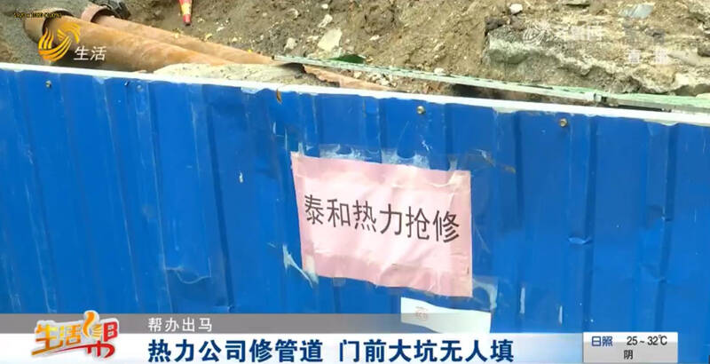 热力公司修管道 门前大坑无人填