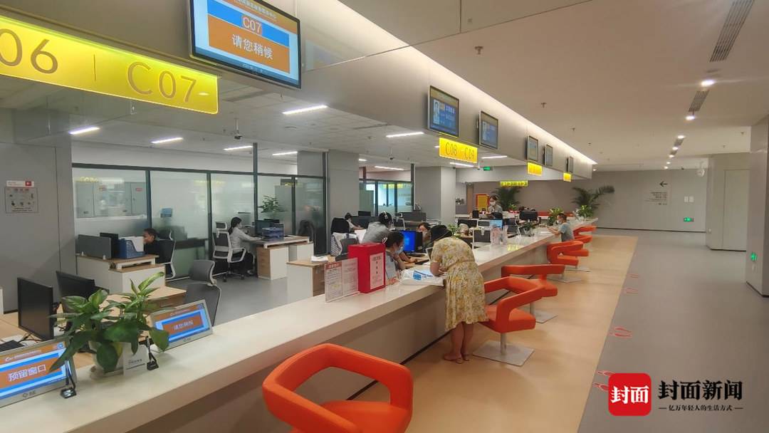 搬迁后的工程建设全流程一站式审批审查服务中心,位于成都高新区政务服务中心4楼C区。前台开辟了5个服务窗口,不时有企业代表前来办件,后台的办公室中,十余名来自公园城市建设局、生态环境城管局、发展改革局等不同职能部门的工作人员正协同办公。