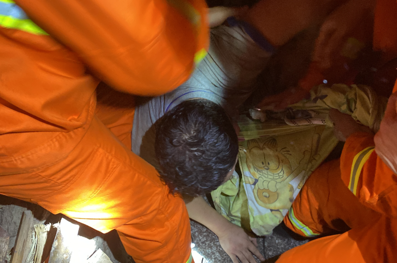 在救援过程中,因长时间跪扶在井口与被困人员交流沟通、舒缓心理压力,导致常冠群的膝盖出现瘀血现象。确认被困男子无大碍后,消防人员撤离现场。