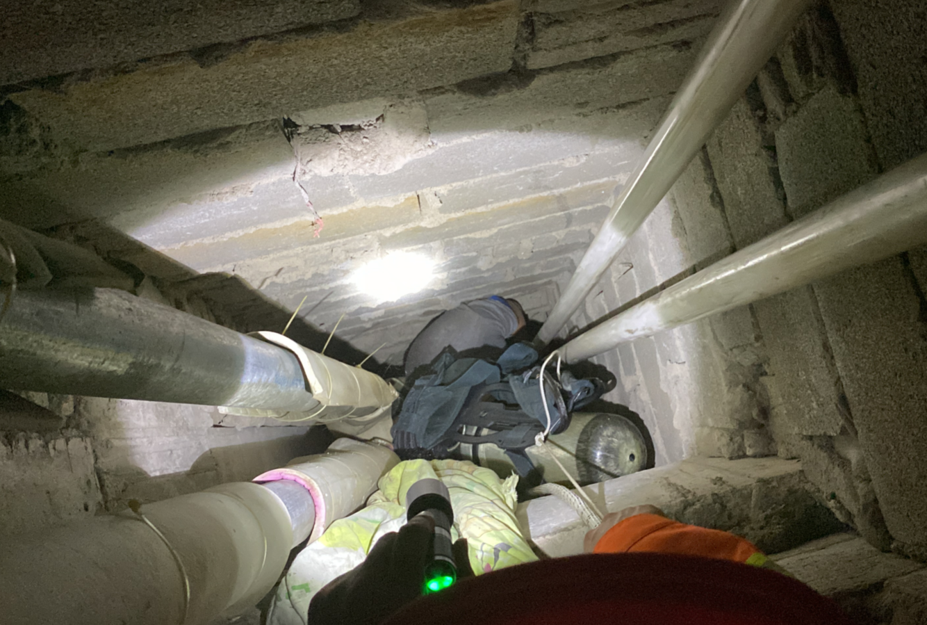 事发管道井出口位于二楼,深度在6米左右,井口长宽均不到一米,且里面布有多条管道,导致管道井内空间更为狭窄,一名体重超过200斤的男子困在井底,因为缺氧男子已经陷入半昏迷状态,如不及时施救,甚至有生命危险。