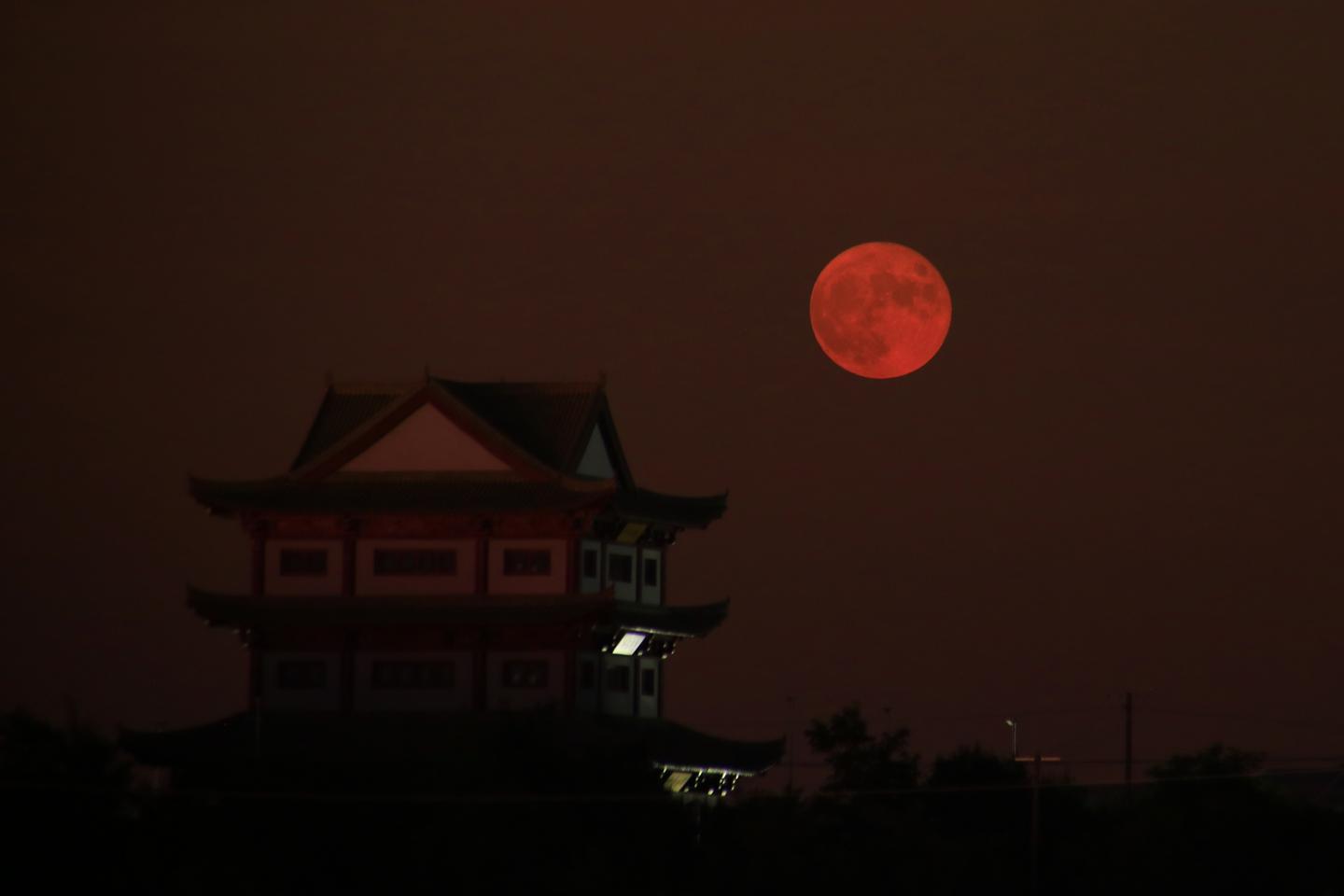 杭州:“超级月亮”掠过雷峰塔顶