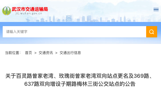 ● 百灵路曾家老湾双向站点更名为百灵路百合街,涉及线路:369路。
