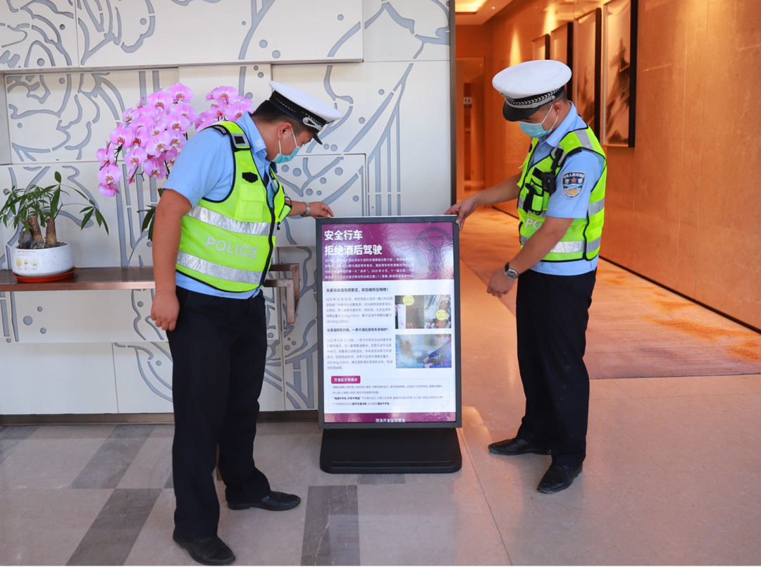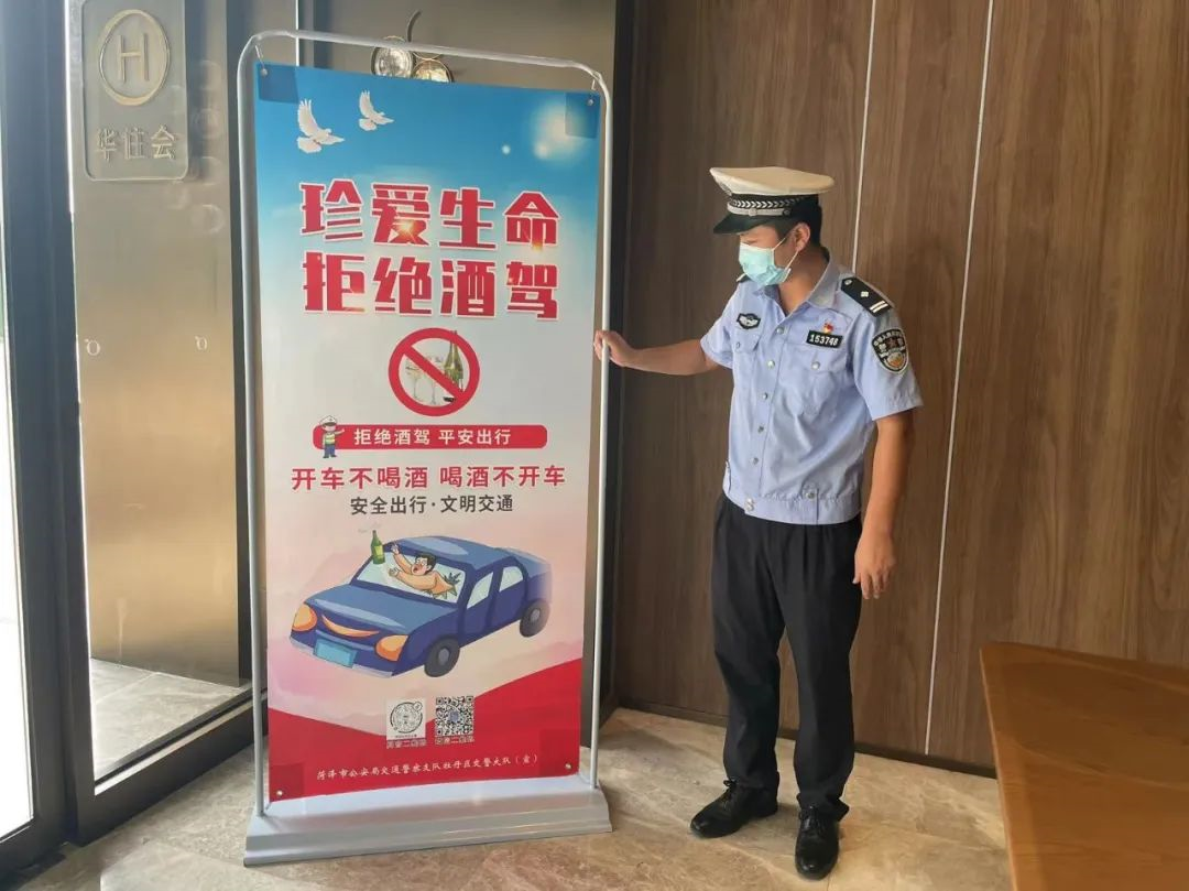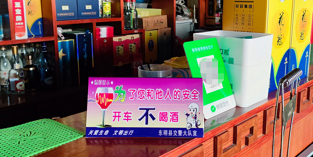 开发区宣传民警在餐桌、收银台醒目位置摆放“切勿酒后驾车”类提示牌,对就餐顾客进行温馨提示,提醒前来就餐的驾驶员不要饮酒;提醒前来就餐的群众规劝亲朋好友不要酒后驾驶、不乘坐酒后驾驶的机动车,及时遏制违法行为和交通事故的发生。