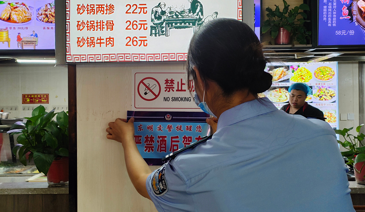 东明县交警大队宣传科民警,深入村庄、辖区酒店、餐馆、KTV等餐饮娱乐场所开展“全民拒酒驾”“劝阻酒驾”宣传活动。活动中,民警通过发放宣传资料并在娱乐场所醒目位置粘贴严禁酒后驾车的提示贴,提醒广大市民酒后不开车,开车不喝酒。