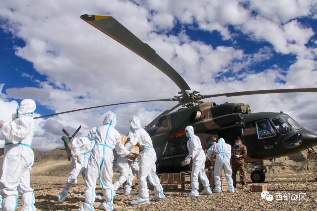 连日来,西藏阿里地区札达县境内普降大雨,部分地区发生洪灾,数百名群众被困于10余个点位。8月12日,阿里军分区某边防团联合某陆航旅采取空中投送方式,为被困群众投送生活物资,保证了被困群众生命安全。