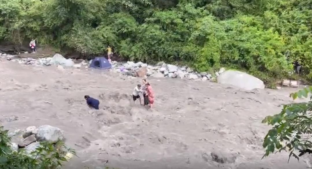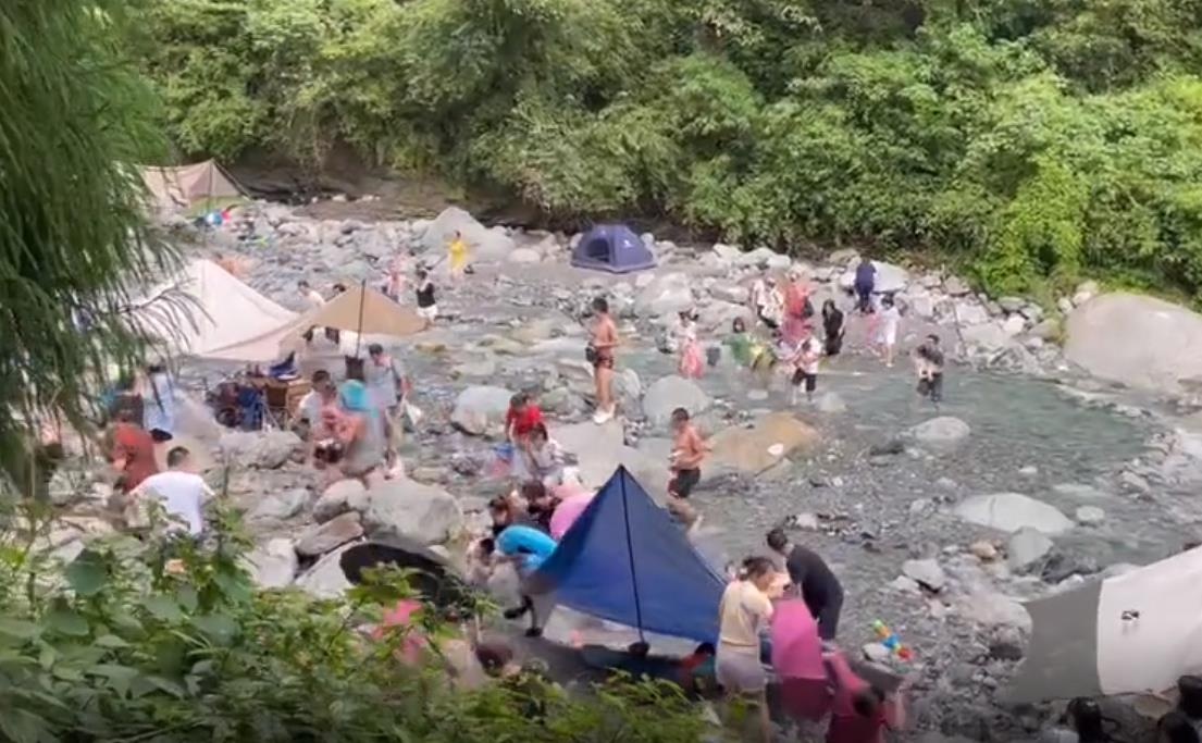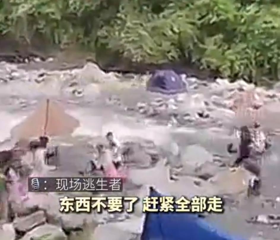 此前现场画面显示,有不少游客在河中玩水,水忽然涨起来,正在戏水消暑的游客紧急避难,致有人被困水中,有人被冲走。