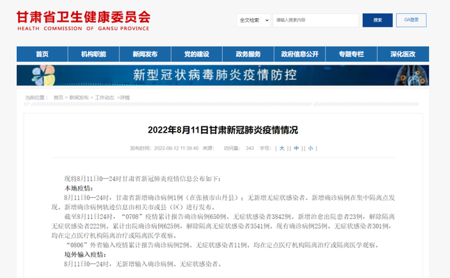 现将8月11日0—24时甘肃省新冠肺炎疫情信息公布如下: