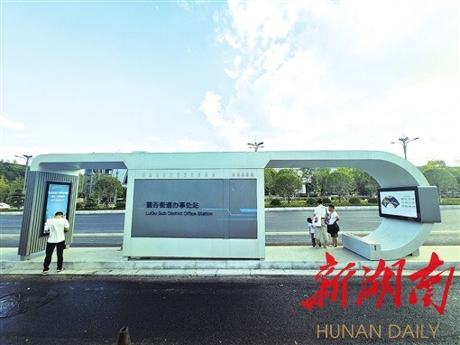 (公共卫生间、无线充电、LED电子屏、监控系统……桐梓坡路沿线的智慧公交站台亮相,极大方便出行等车的市民。)