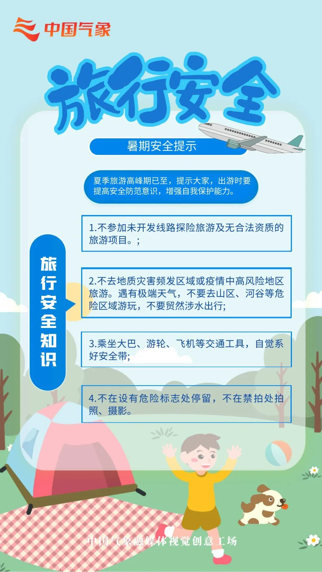 暑期是旅游出行的高峰期,也是我国的主汛期,每年的6月至8月正是强降水、高温等灾害性天气高发时段。公众旅游出行要特别注意防范暴雨等灾害性天气引发的次生灾害。