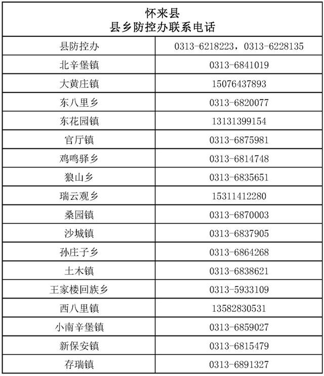 二、全县居民(含滞留人员)非必要不离开怀来。如有特殊情况确需离开怀来的,要向属地乡镇疫情防控办报告。