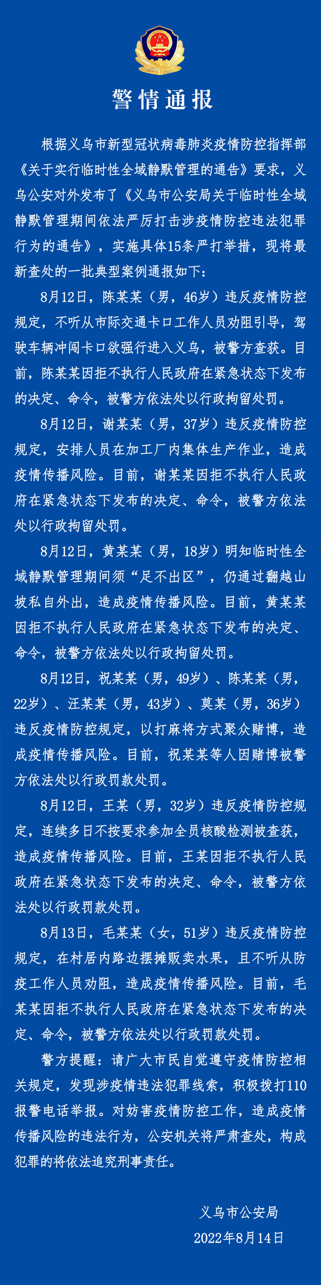 此外,今日义乌公安发布最新警情通报,多人被查处。
