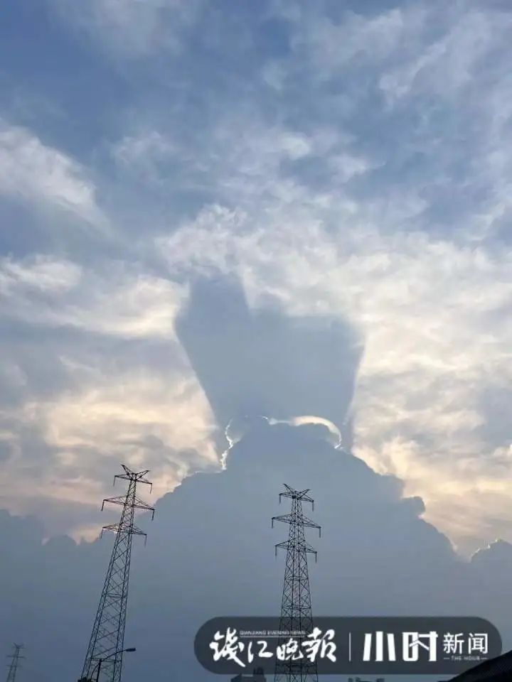 今天傍晚,多位读者给钱江晚报小时新闻爆料说,抬头看天,看到了小熊和彩虹。